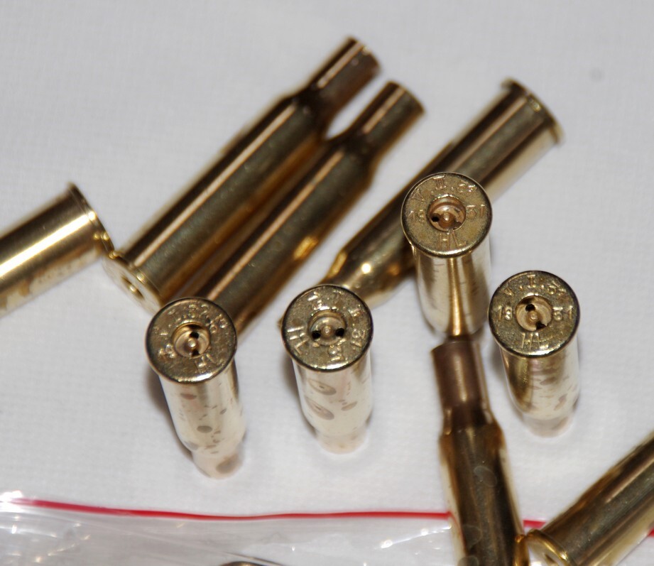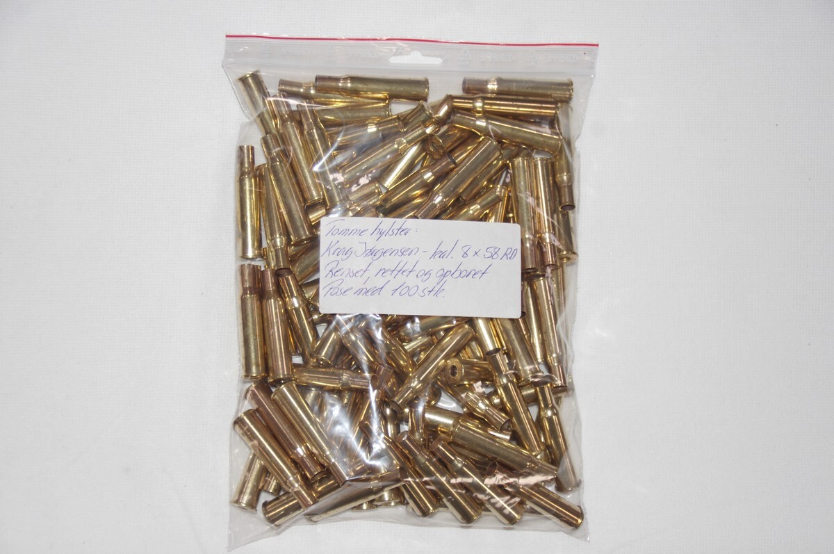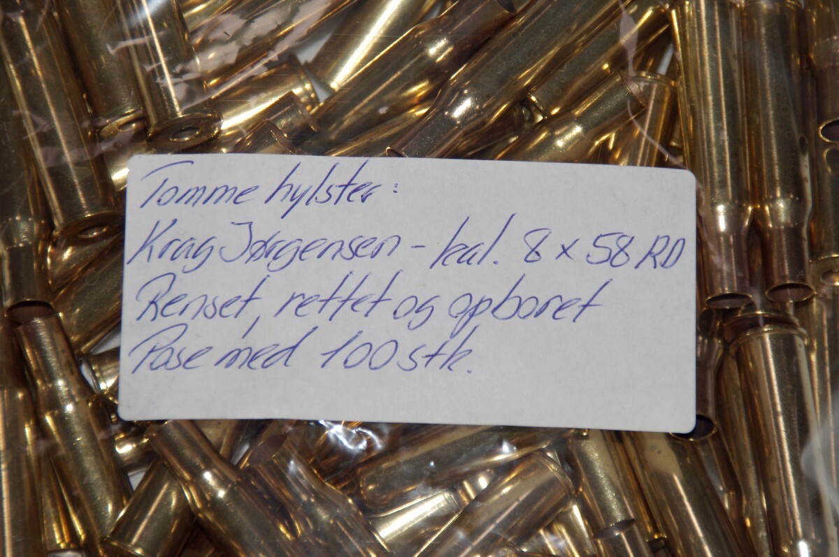 Gamle fine hylster, renset, rettet og hullerne op boret. (1,5 mm.)
