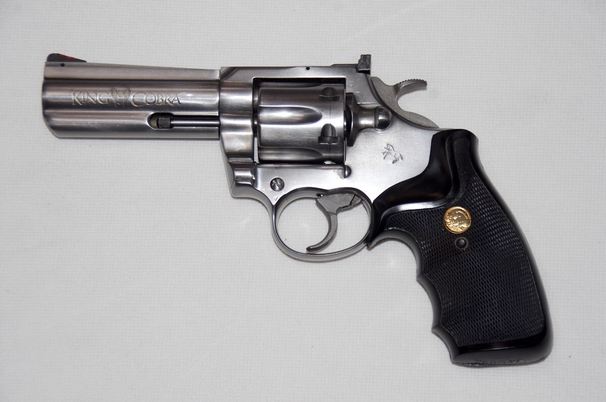 Skøn Colt revolver i mat stål med Colt gummi greb.